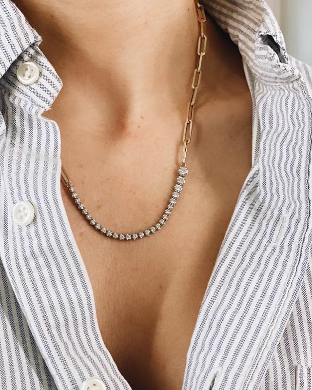 15 MM Double Beam Continuo Chain Necklace with Pavé Links.
