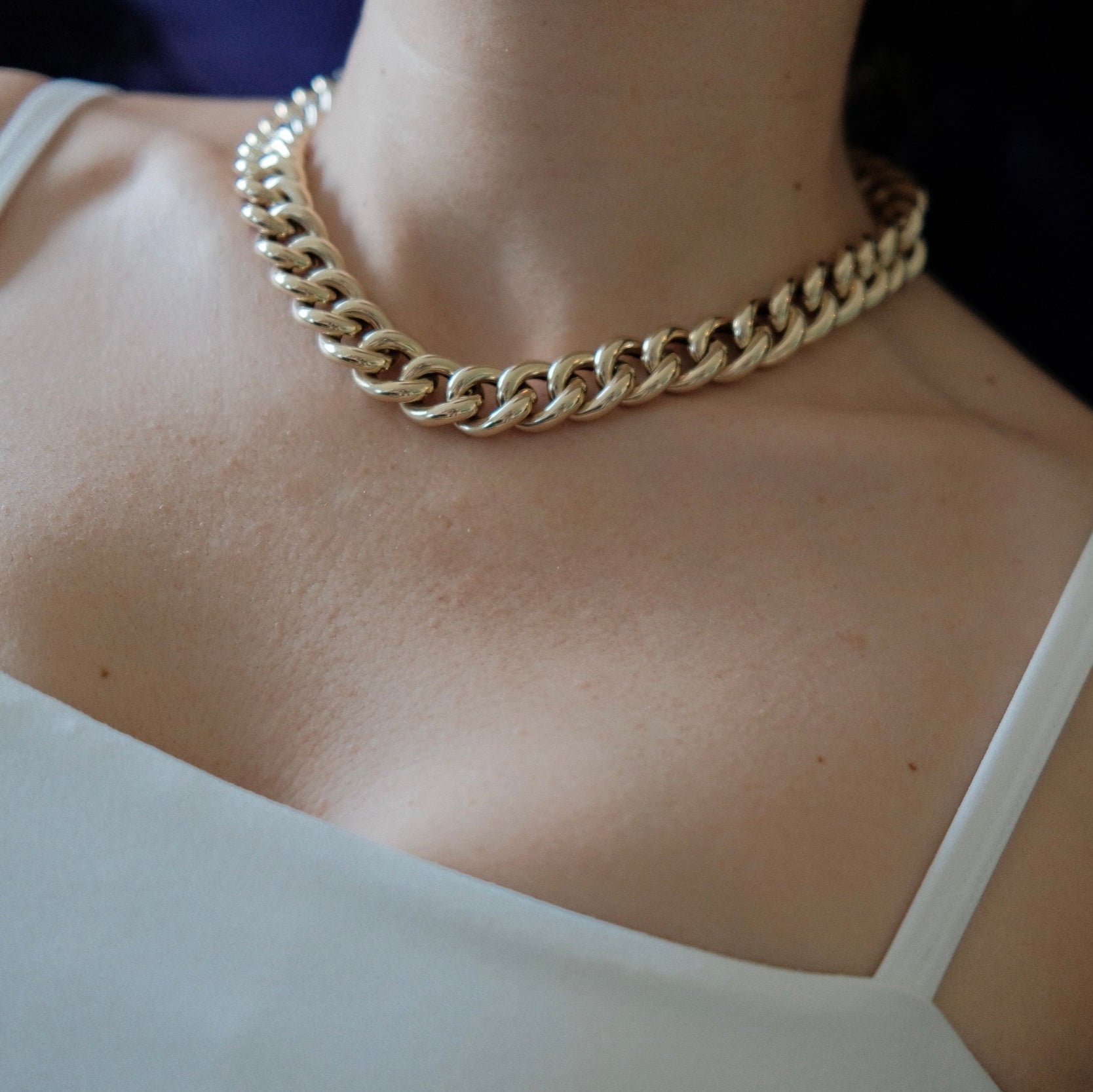 Fine Stirrup Chain Necklace with Tusk Clasp