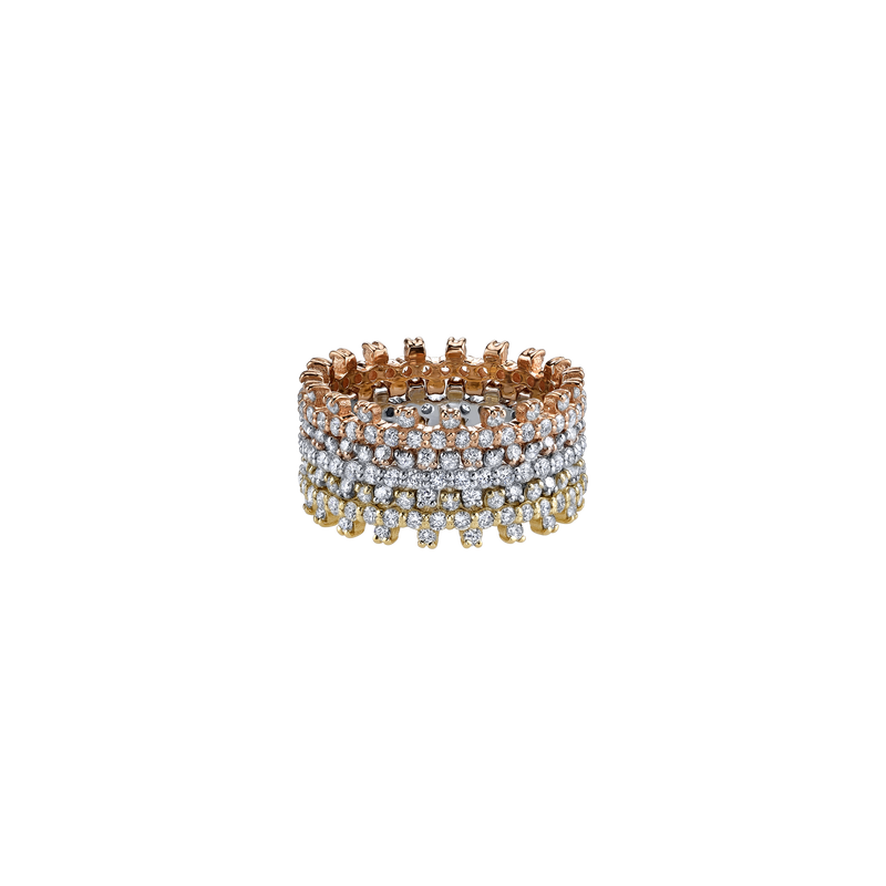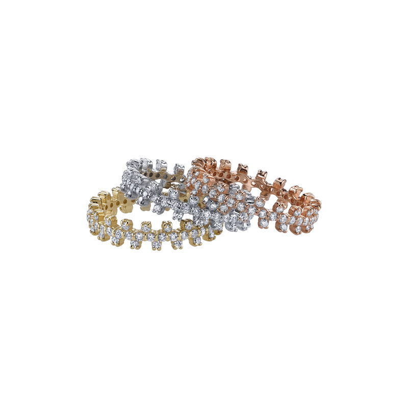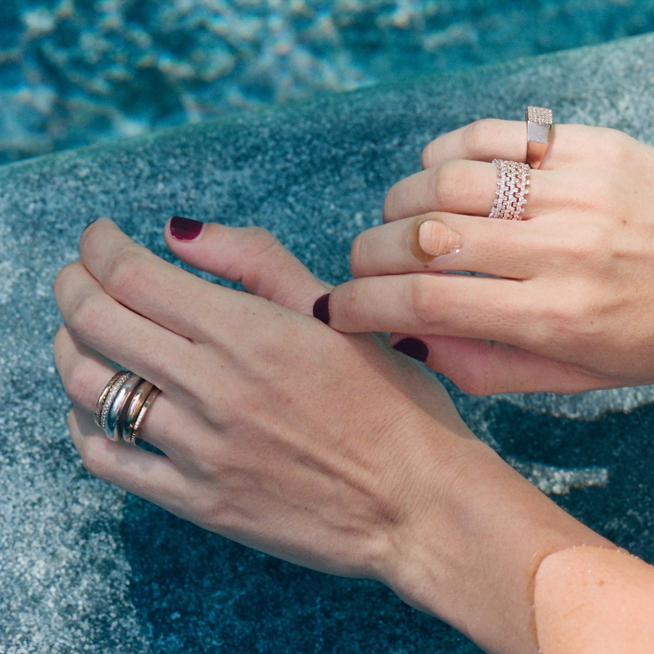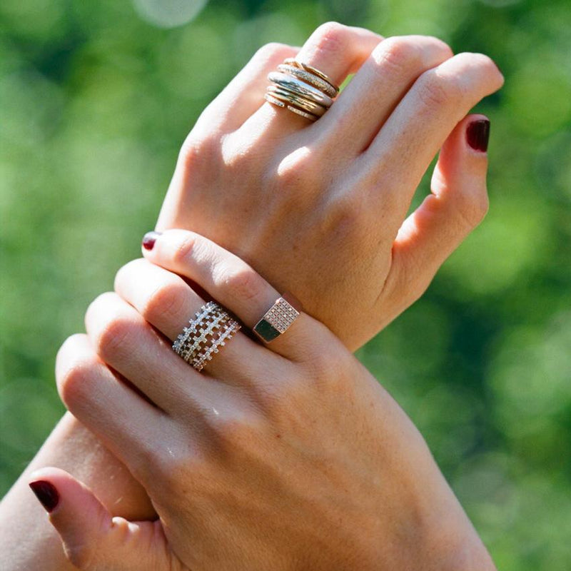 Anillos de perno entrelazados ultra lujosos y bellamente diseñados con pavé apilado mejor usado, pero también exquisito cuando se usa solo.