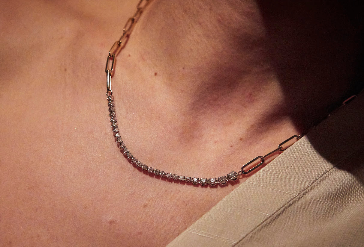 長方形チェーンのアセンディングダイヤモンドテニスネックレス