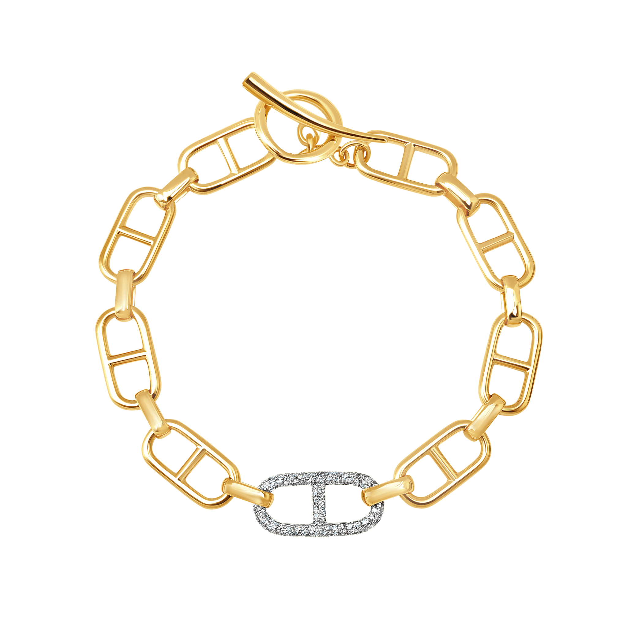 Gold stirrup link bracelet featuring a single diamond-accented stirrup and a tusk clasp - Gabriela Artigas