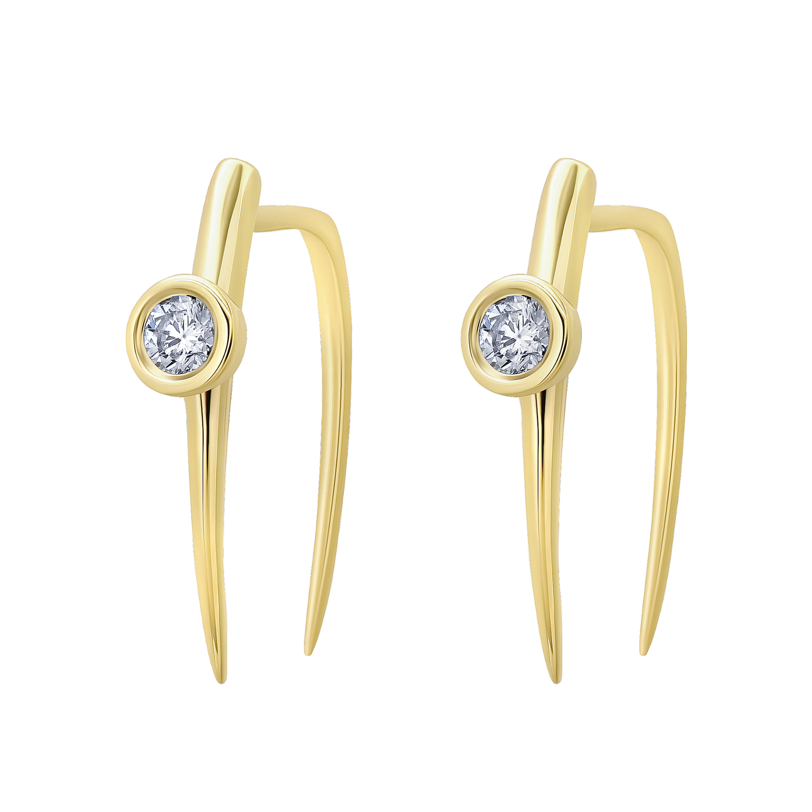 pull-through tusk-shaped gold earring with a floating diamond set at the front - Gabriela Artigasgold tusk-shaped pull-through earrings featuring a floating diamond at the front - Gabriela Artigas