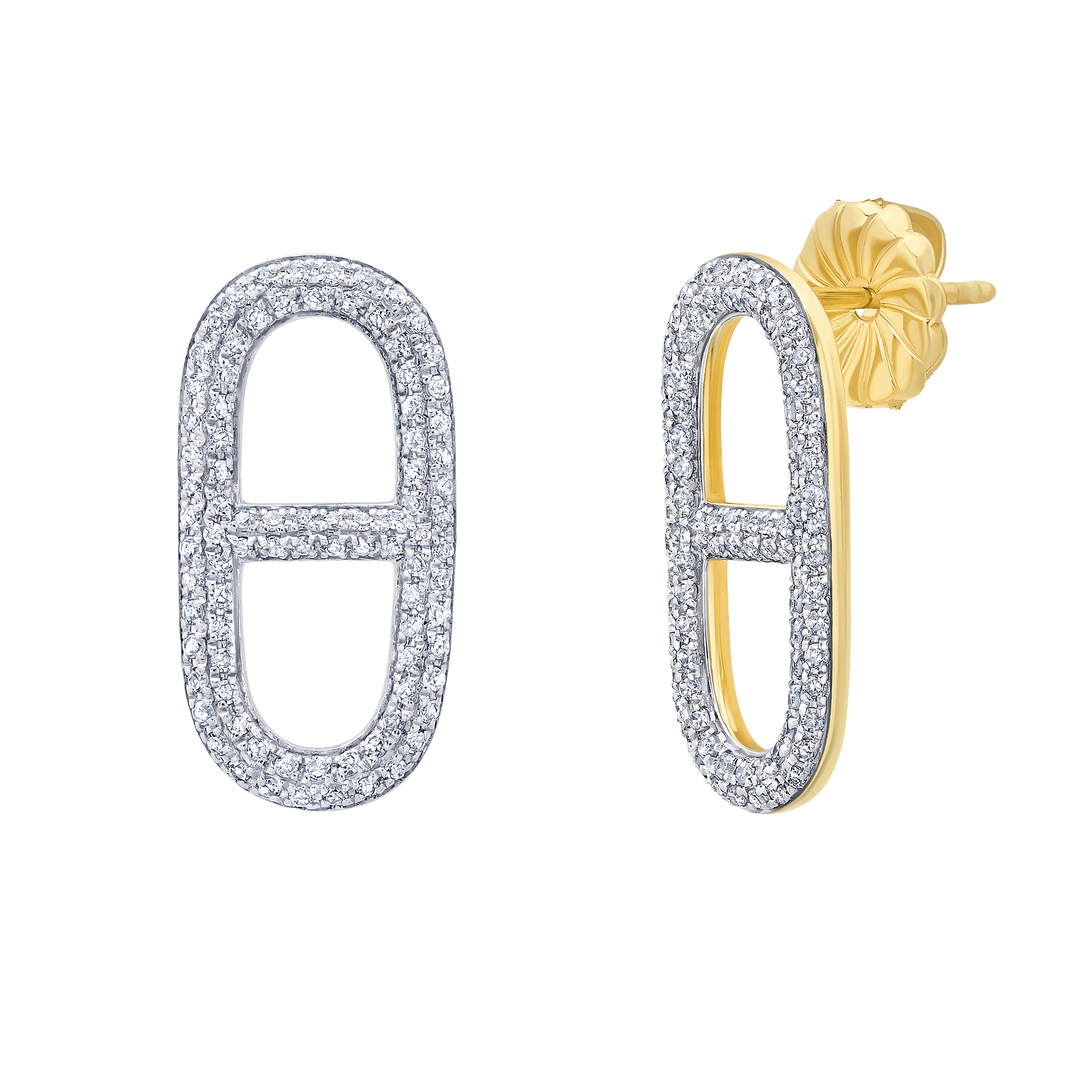 Gold double beam chain earrings with sparkling white pavé diamonds – delicate, daring, and downright dazzling. Gabriela Artigas' signature shine. #GoldenGlowDouble beam gold chain earrings with sparkling white pavé diamonds – effortless movement, endless brilliance. Gabriela Artigas' modern elegance. #ShimmerInGold
