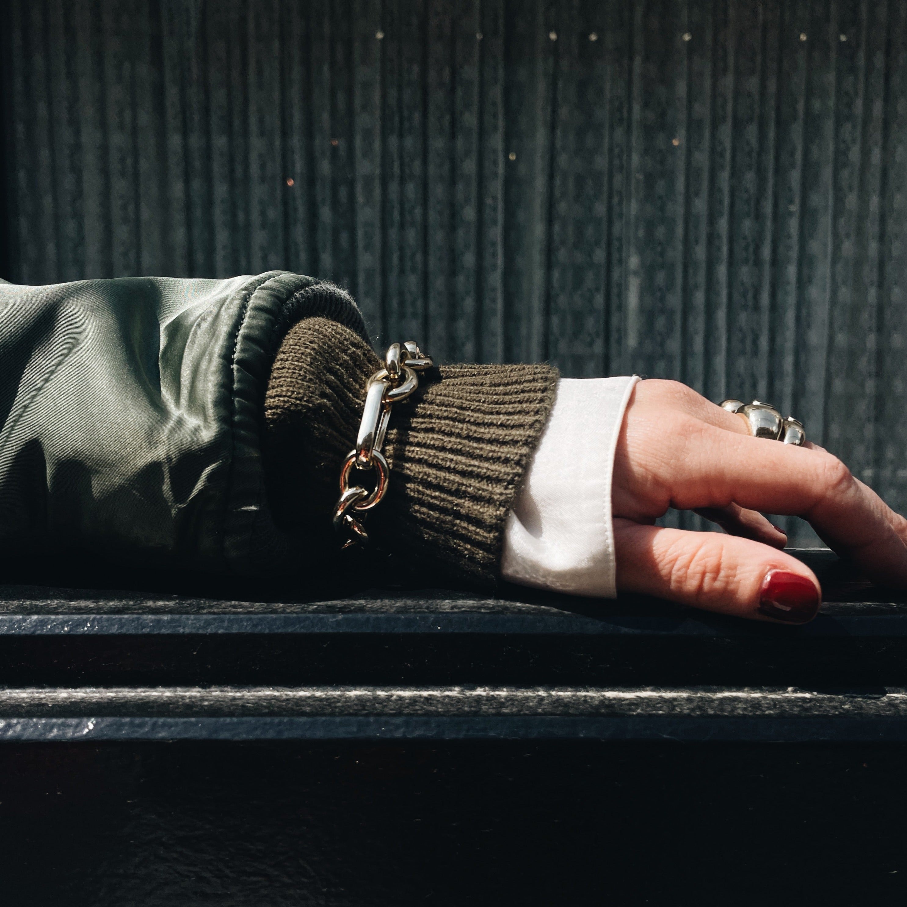 グランデ ミックス レクタンギュラー リンク ブレスレットは、ガブリエラ・アルティガスのマキシマリスト的フォルムを体現した作品です。ミックスシンメトリーの美しさが際立ちます。