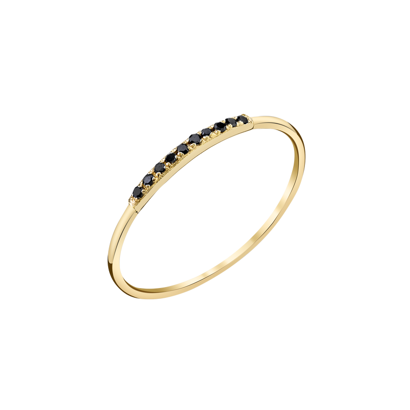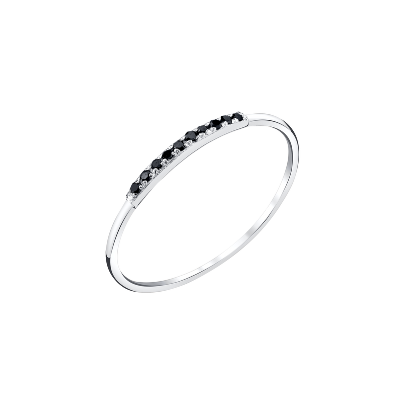 繊細なブラックダイヤモンドがこのクラシックなスタイルのトップカーブに位置しています。