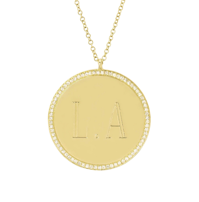 エレガントなゴールドチェーンに吊り下げられたホワイトダイヤモンドで飾られたミラーメダリオン。
