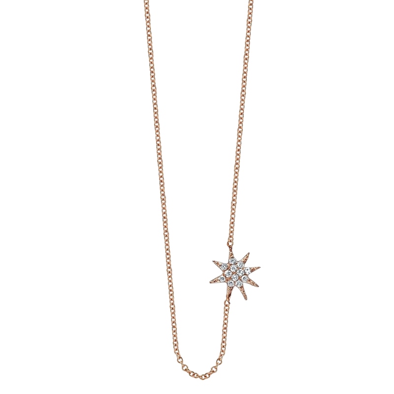 A delicate single star set with pavé diamonds that sits perfectly to the side of your neck.