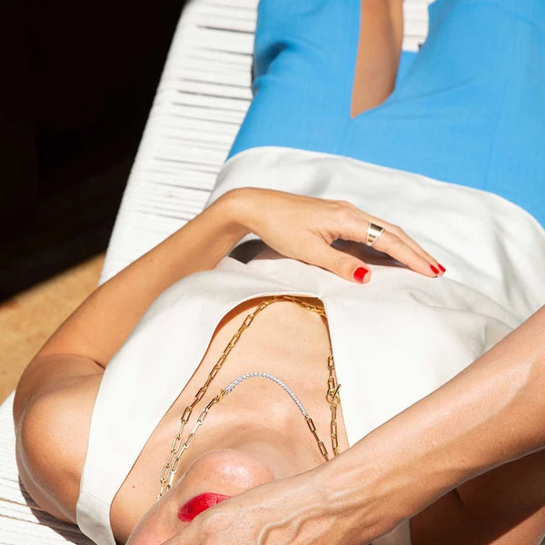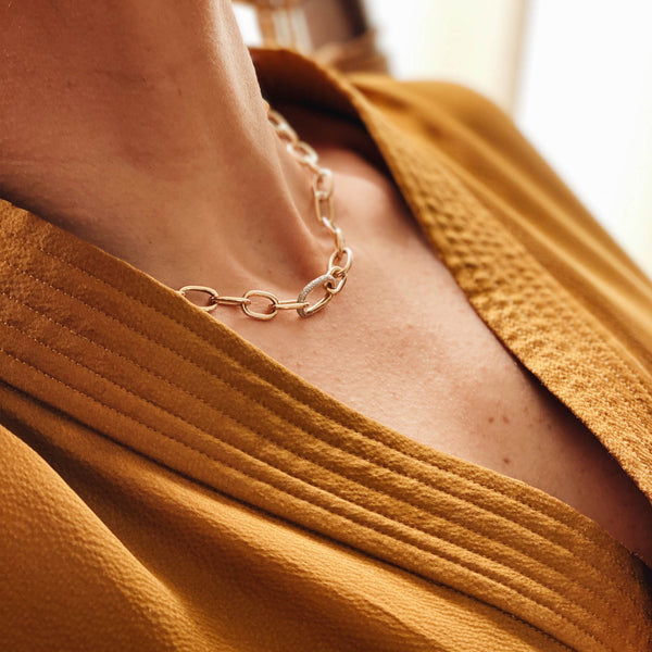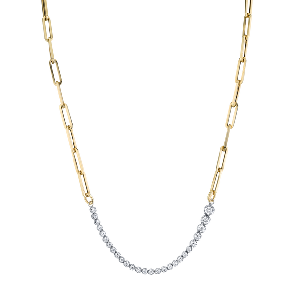 15 MM Double Beam Continuo Chain Necklace with Pavé Links.