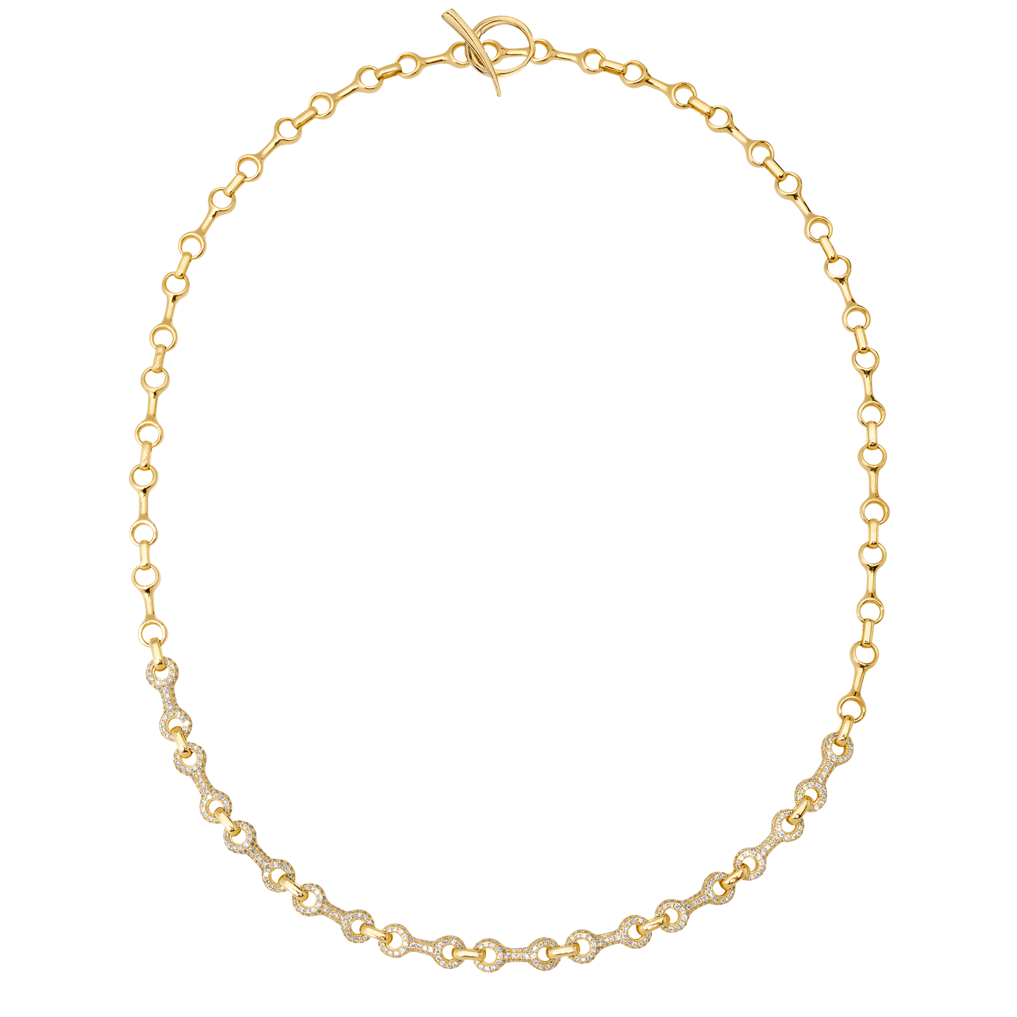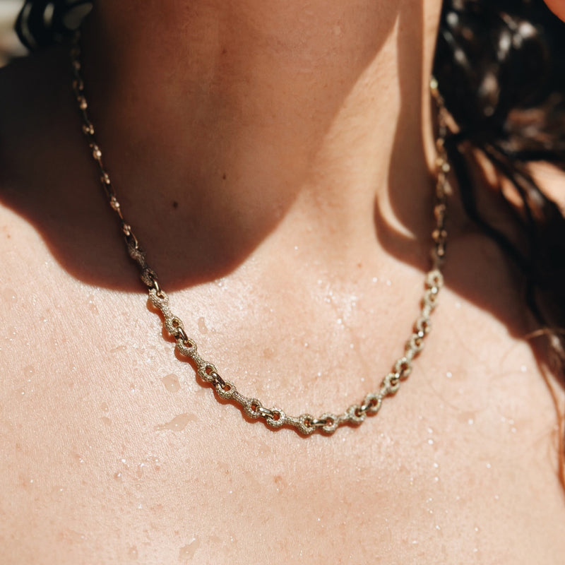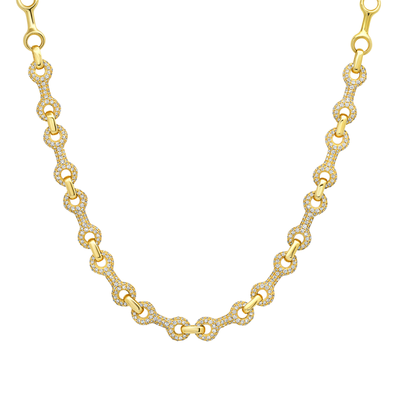 15 MM Double Beam Continuo Chain Necklace with Pavé Links.
